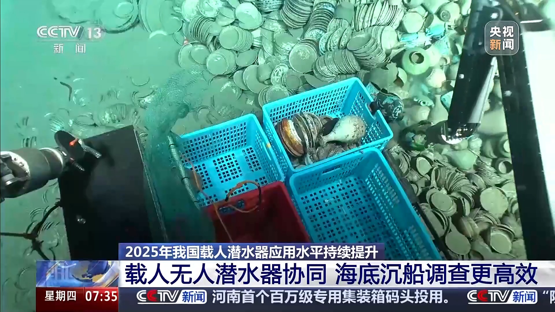 2025年,“深海勇士”号载人潜水器,在我国南海西北陆坡水下文物保护区内,共执行深海考古应用潜次18次,首次进行载人和无人潜水器协同作业,开展海底沉船高效率调查,支撑深海考古取得新发现。